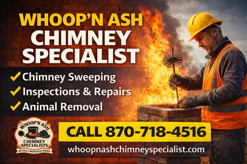 Whoop'n Ash Chimney Specialist is dedicated to providing high-quality chimney services in south Arkansas. With years of experience, and a retired firefighter we prioritize customer satisfaction and safety.